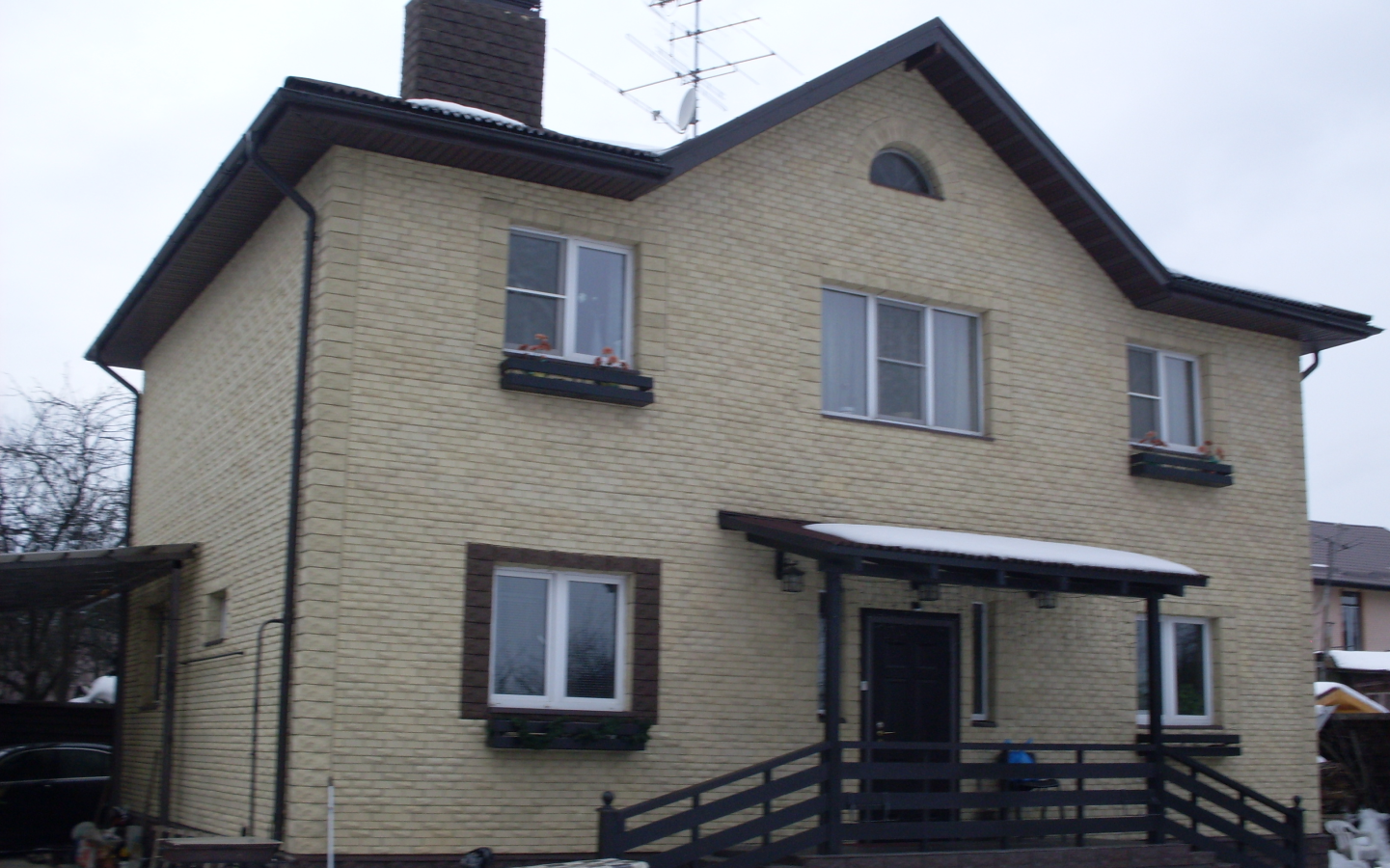 Дом из газобетона, утепленный пеноплексом и облицован клинкерной плиткой и камнем